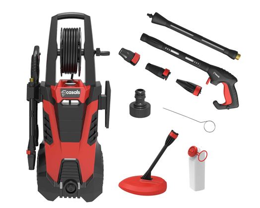 Power through dirt with our Casals 2200W High Pressure Washer. Delivering up to 165 bar and 6.8L/min flow, it cleans vehicles, paving, and outdoor areas with ease. The 8m hose, built-in foam bottle, and adjustable spray gun offer total control, while the wheeled motor unit and full accessory set, including paving brush and turbo nozzle, make every cleaning task faster and effortless.